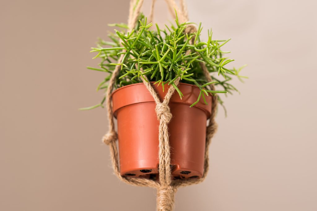 - Cestas colgantes y macramé: